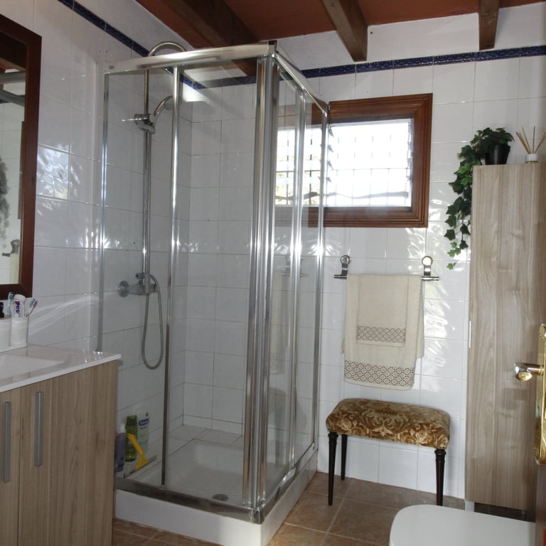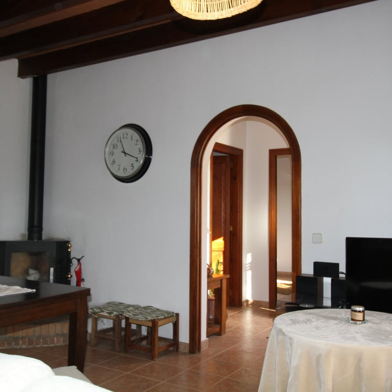 On the ground floor, the layout includes one bedroom, a living room with fireplace, an open-plan kitchen and a full bathroom, forming a warm, functional and easy-to-maintain living space with strong potential for interior modernisation and reconfiguration within the existing footprint. The upper floor features the second bedroom, completely exterior, with open views and direct access to a private terrace, ideal as a master bedroom or a peaceful relaxation area.
