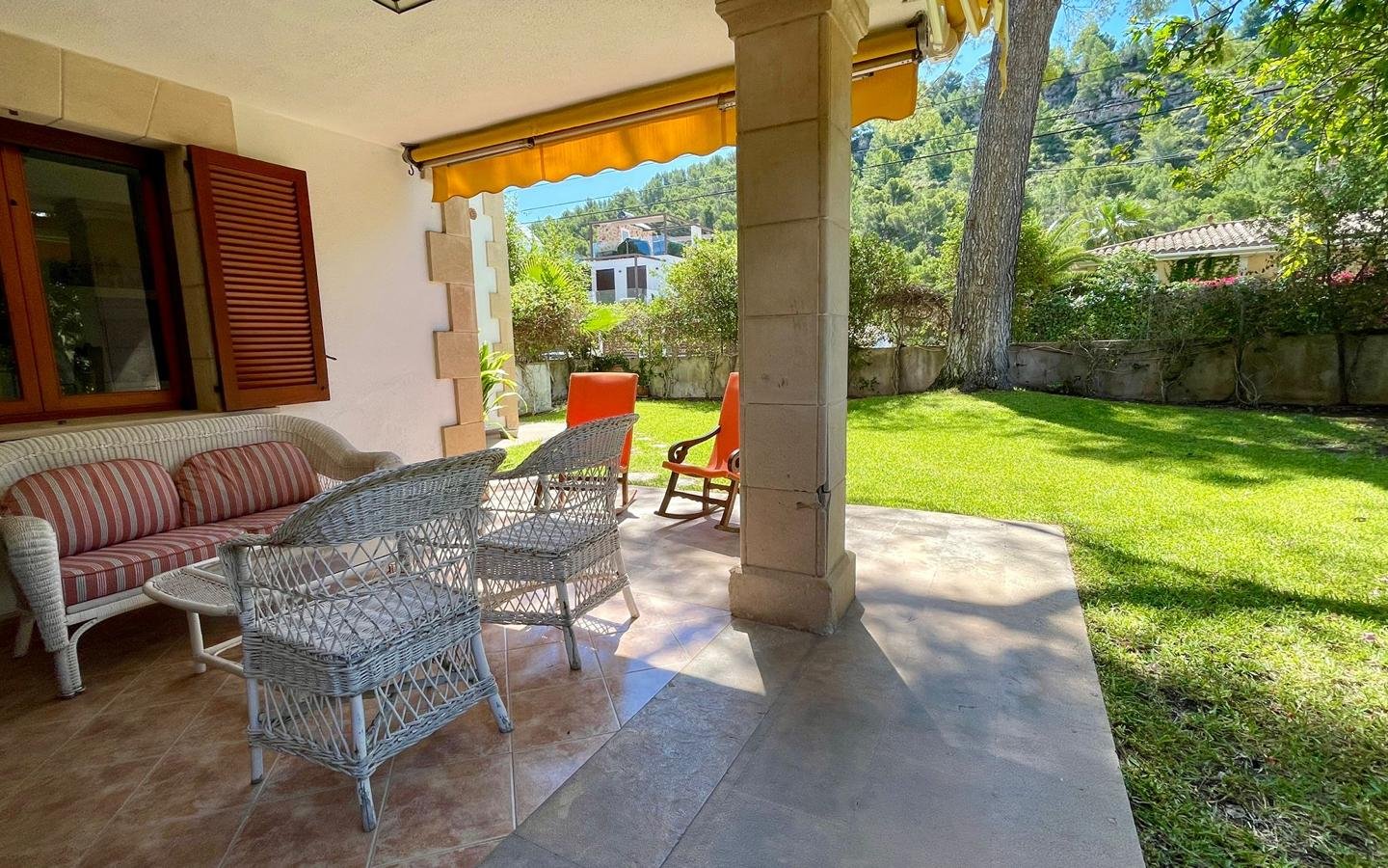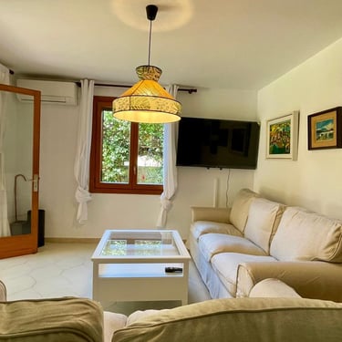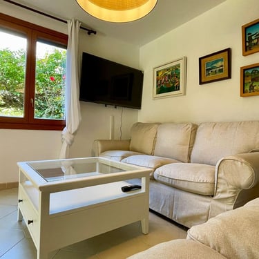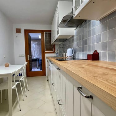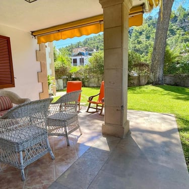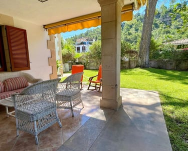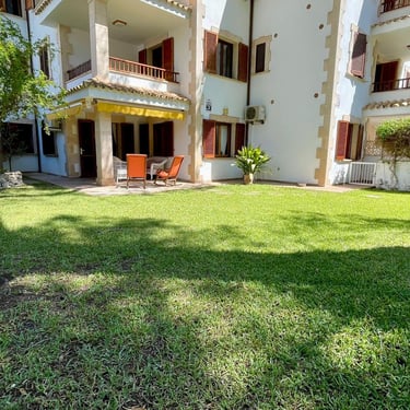 La propiedad también ofrece conexión Wi-Fi y televisión, garantizando que la tecnología esté siempre al alcance. En el exterior, se encuentra un jardín bien cuidado con riego automático y una terraza perfecta para disfrutar del clima mallorquín. El estacionamiento privado añade un extra de comodidad para los inquilinos.